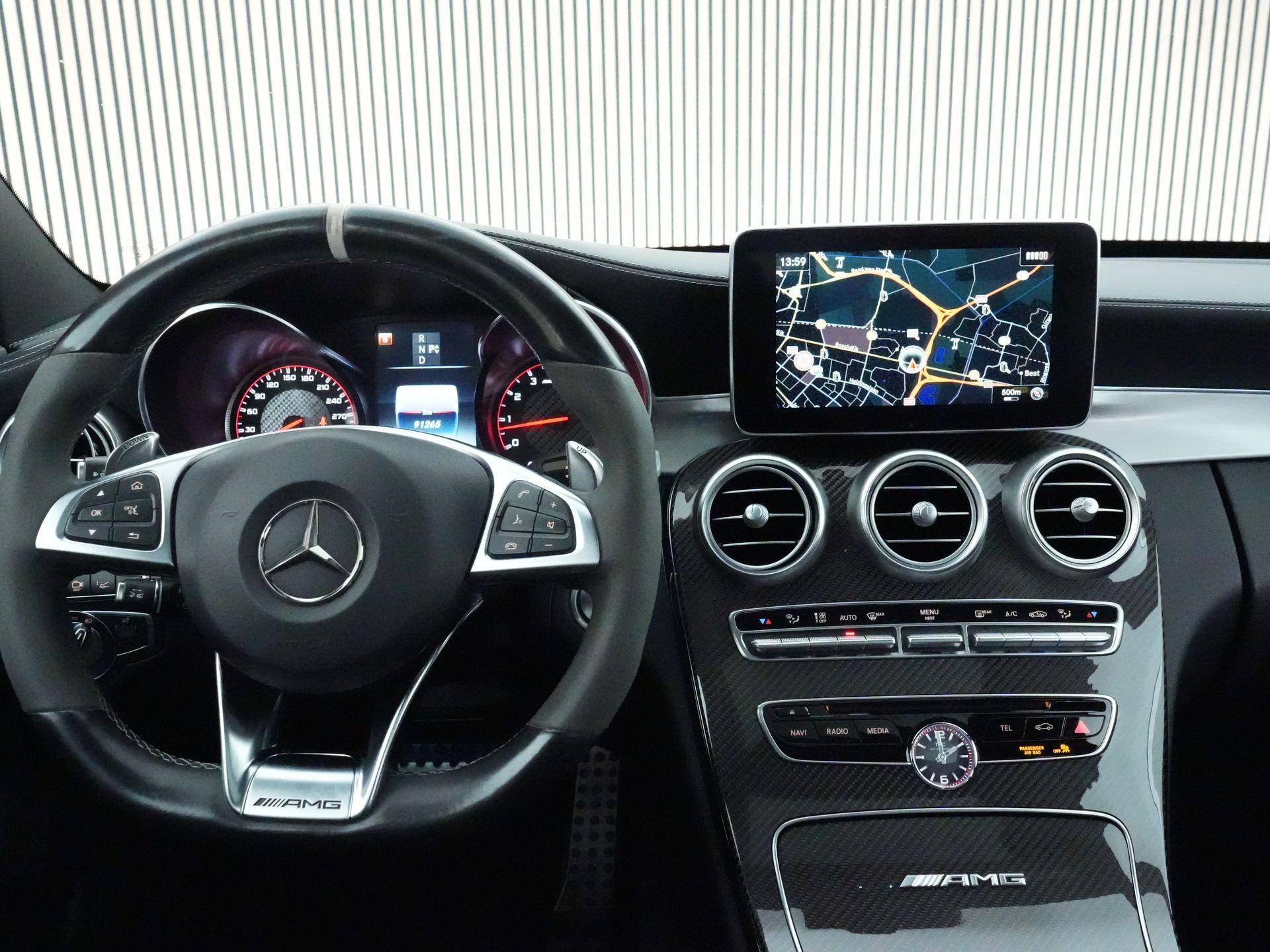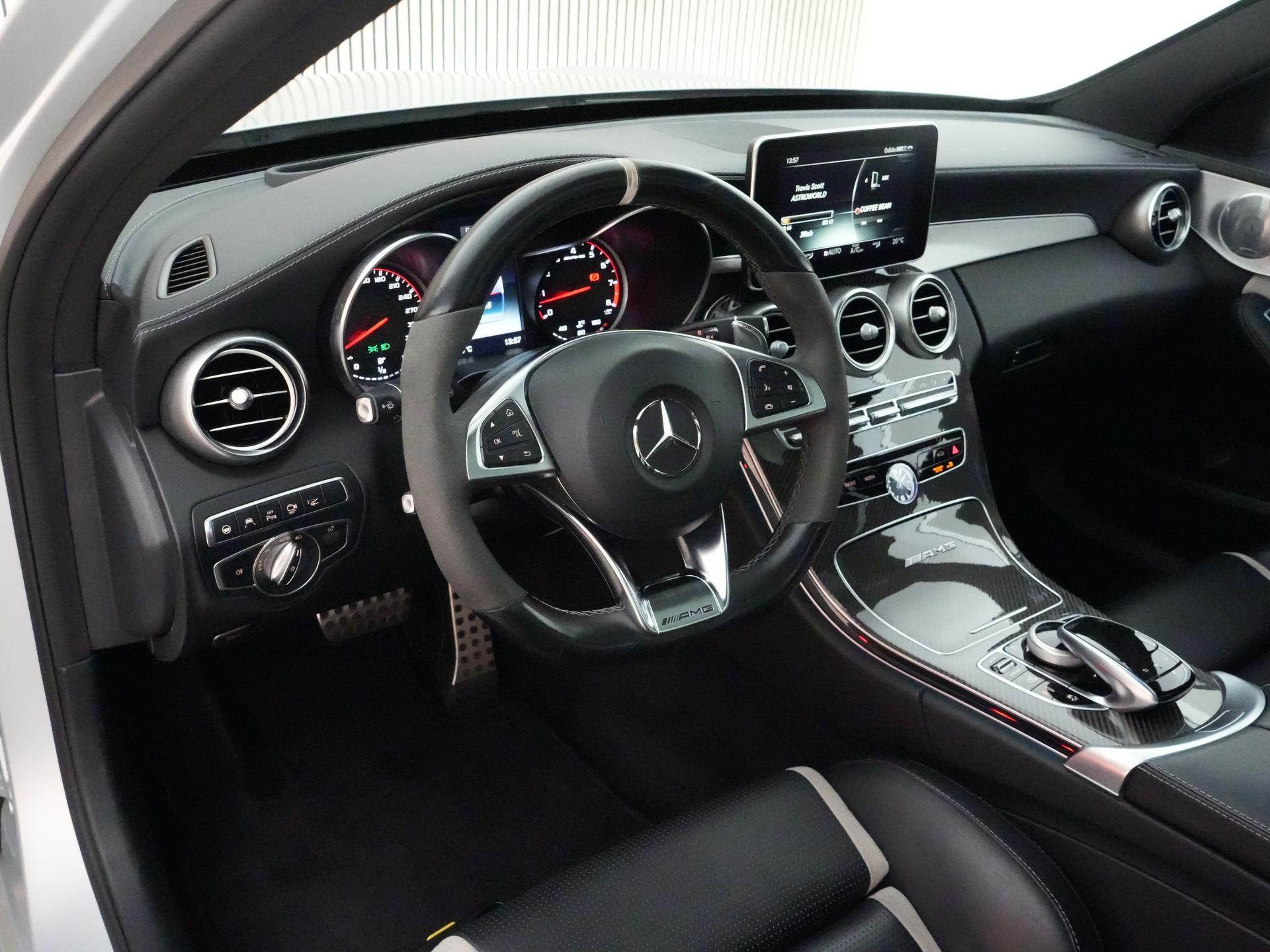 Dit exemplaar is uitgevoerd in een zeer complete samenstelling met onder andere het AMG Driver’s Package, panoramadak, head-up display, AMG Performance-stoelen, carbon interieurlijsten, Night pakket, elektrisch sperdifferentieel, Burmester premium sound system, Keyless-Go, stoelverwarming, sfeerverlichting en een schakelbare sportuitlaat voor die kenmerkende AMG-sound.