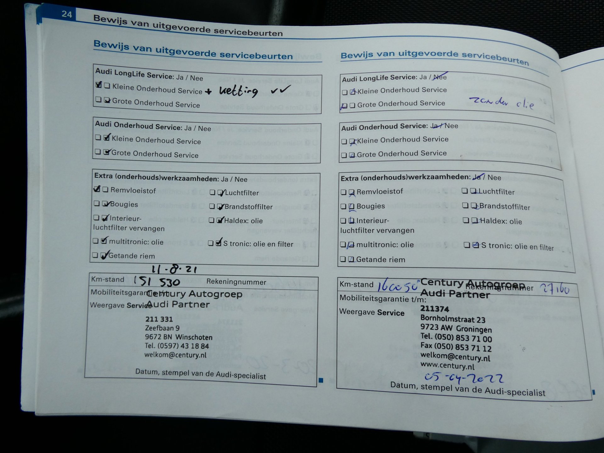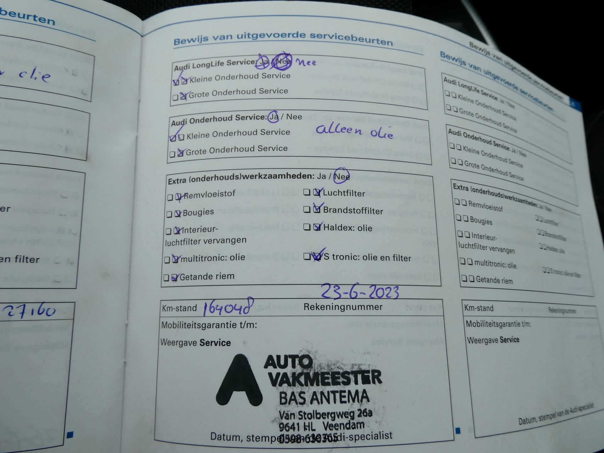 Onderhoudsboekjes: Aanwezig